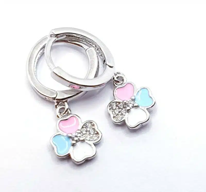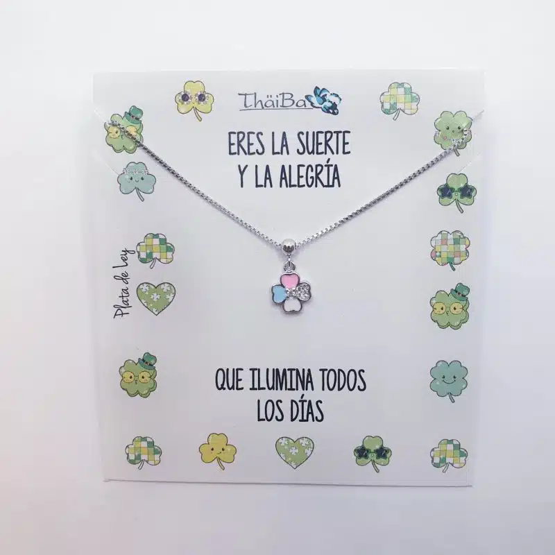 Collar niña trébol de la suerte en plata de ley con cadena a varias medidas.